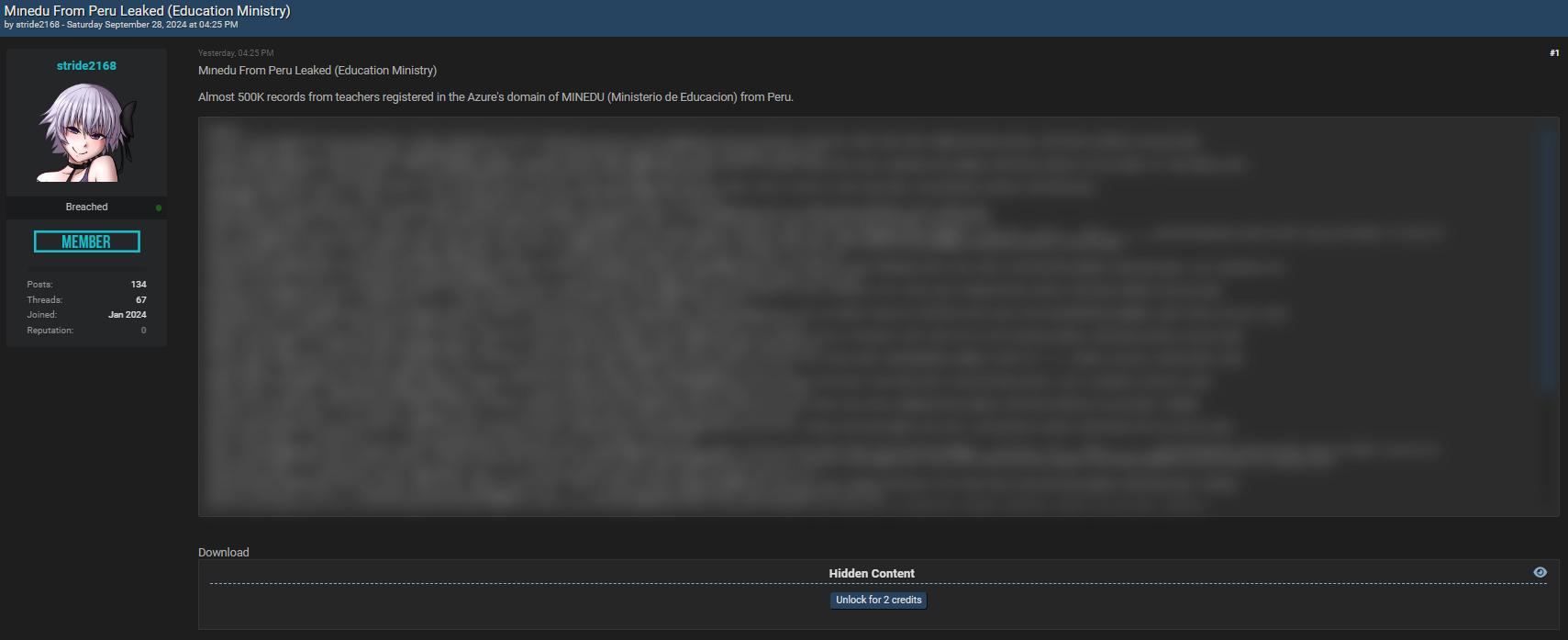 A Threat Actor Allegedly has Leaked the Data of Ministerio de Educación del Perú