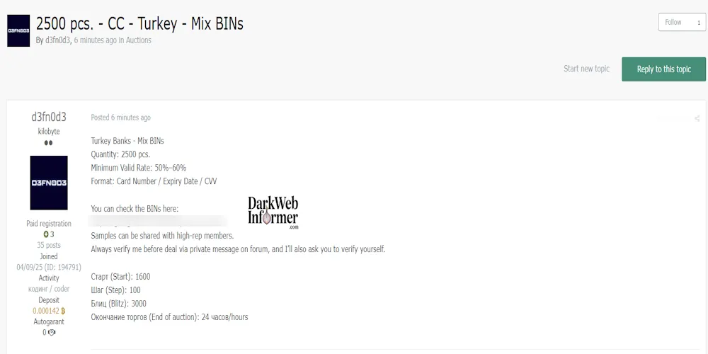 Fraud Alleged Sale of 30,000 Turkish Credit Cards (80–90% Validity) , and Dark Web Informer November 26, 2025 Paid Members Public