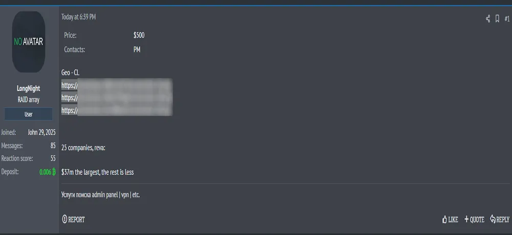 🚨 Title: Alleged sale of unauthorized VPN access to a Canadian automotive company