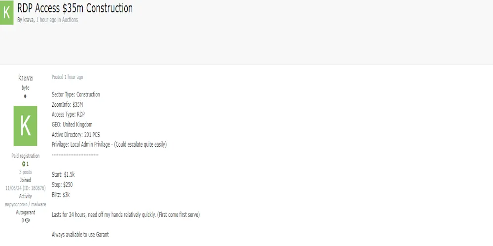 A Threat Actor is Allegedly Selling Unauthorized Access to an Unidentified Company in Mexico