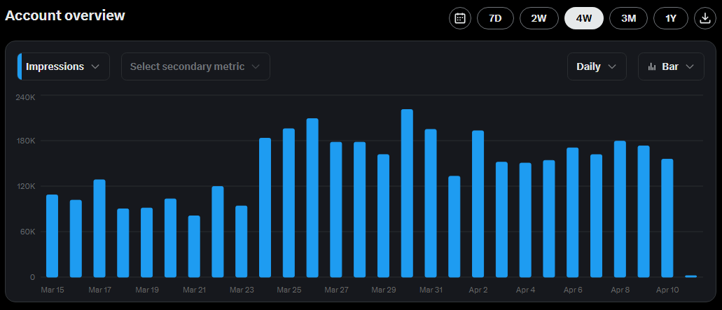 Website snapshots from the last 7 days, 28 days, and recent X performance. Need something more granular? Ask and I will share.