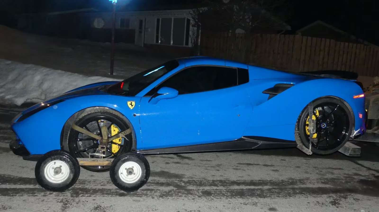 Later that same day, police executed four search warrants in the Ottawa area. Those searches uncovered a staggering 27 kilograms and 64,000 tablets of 37 different illegal drugs. Officers also seized a stolen 2018 Ferrari 488 Spider convertible worth more than $400,000, along with 11 other stolen vehicles valued at $730,000, a handgun, and $95,000 in cash.