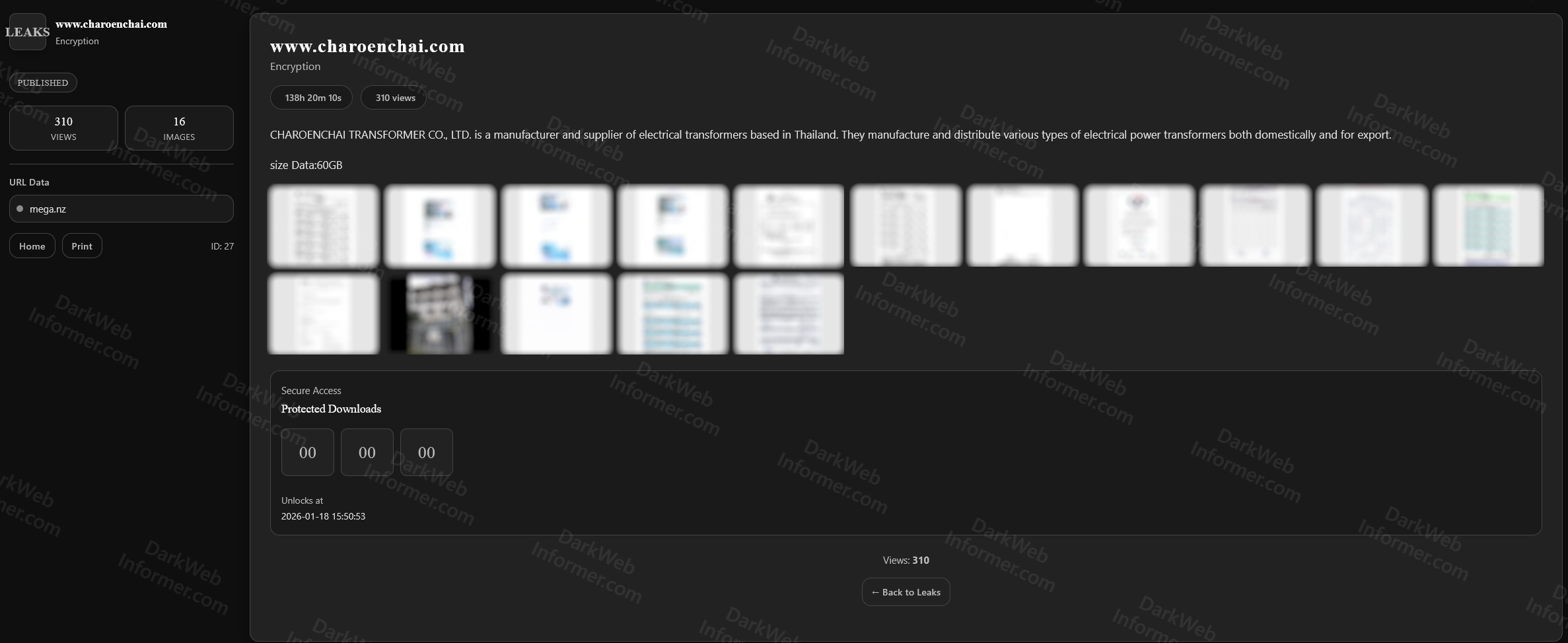 The TENGU ransomware group claims to have successfully attacked Charoenchai Transformer Co., Ltd., a manufacturer and supplier of electrical transformers based in Thailand. The company manufactures and distributes various types of electrical power transformers both domestically and for export.