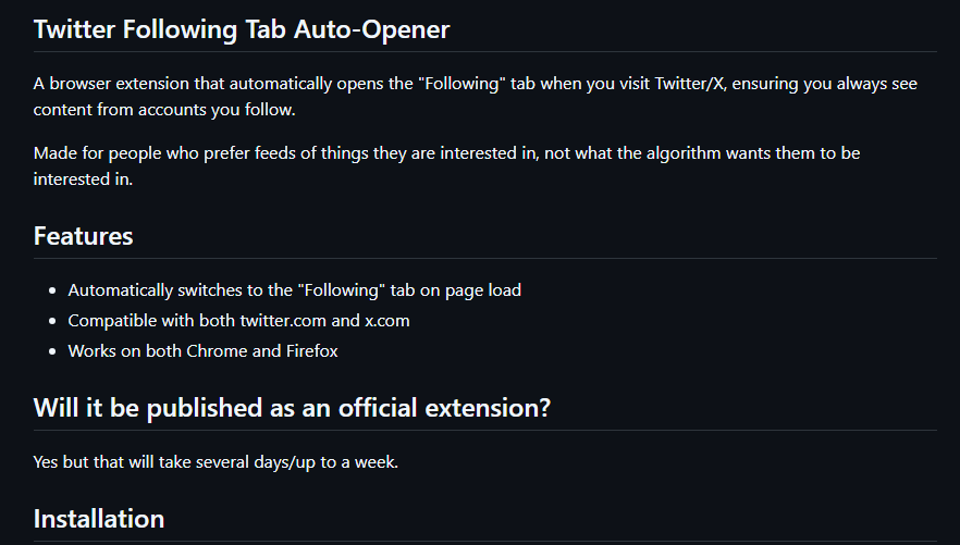 - Visit Twitter/X and the extension will load to Following after refreshing.