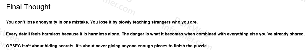 I’m guilty of this too. Almost everyone is. This isn’t written from some perfect OPSEC pedestal. It’s written from watching myself and others slowly leak way more than we realize. This is mainly for high threat model people. Vendors, resellers, market staff, and admins. If your freedom or income depends on anonymity, this matters far more than it does for casual users. But i think even casual users could learn a lot from this.